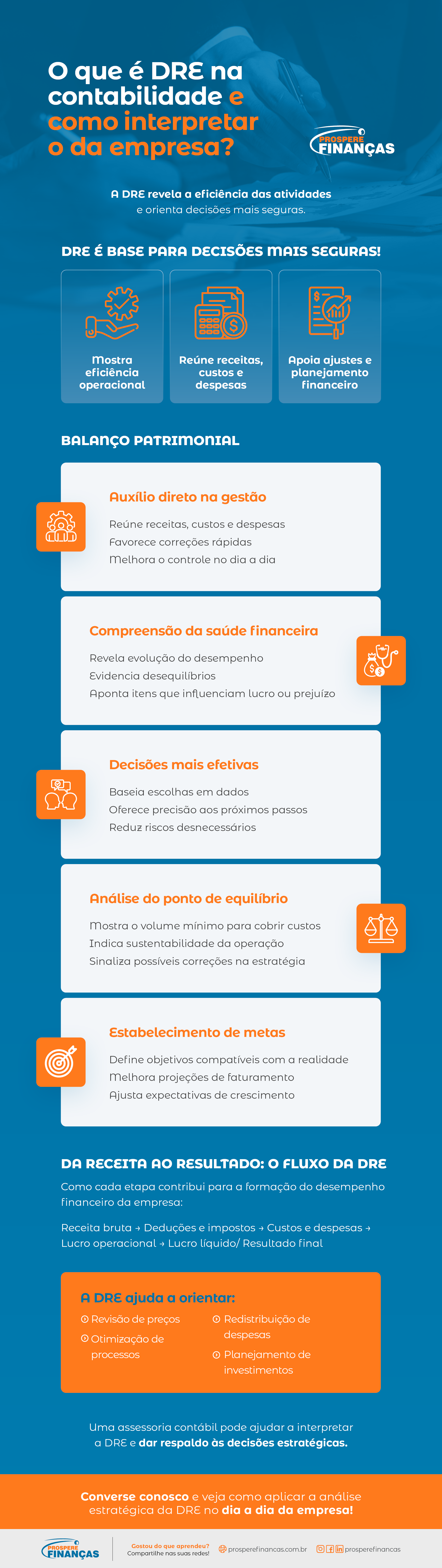 Essa leitura é importante porque orienta decisões estratégicas, como ajustes de preços, revisão de processos, reorganização de despesas e planejamento de investimentos. Além disso, compreender a DRE contribui para um acompanhamento mais seguro da saúde financeira.