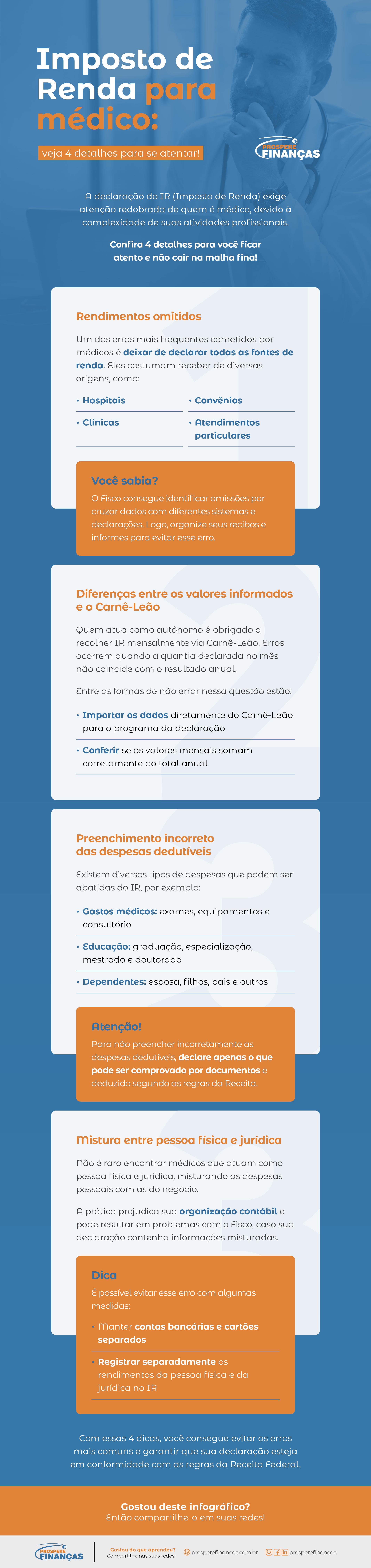 Declarar o IR pode ser um desafio para muitos médicos, especialmente aqueles que trabalham em mais de um local ou atuam tanto como pessoa física quanto jurídica. Esse fator, somado à falta de familiaridade com as regras tributárias, faz com que erros sejam comuns.
